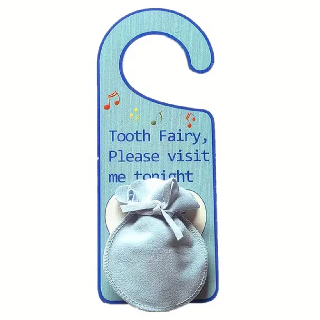 Hang this adorable Blue Tooth Fairy Door Hanger on your child's door and watch the magic unfold!. Comes with a matching pouch for popping your little ones tooth inside and magically exchange the tooth for a present from the Tooth Fairy.