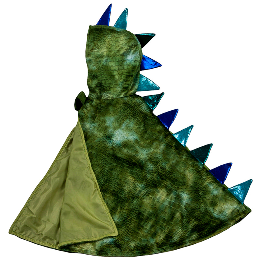 This dragon cape is composed of soft crushed velvet and features distinct green tones for the ultimate dragon effect. The fabric has been designed with scales, resulting in a fantastic dragon cape. The spikes are foam-lined and designed to stand on their own. The Velcro clasp at the collar makes this cloak simple to put on and take off.