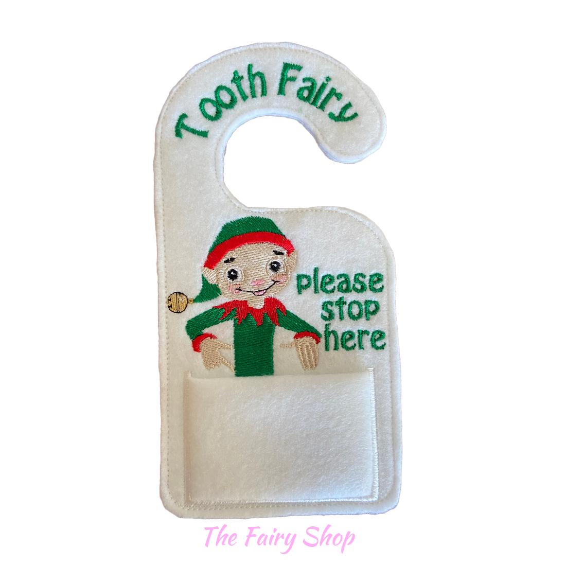 Elf Embroidered Please Stop Here Tooth Door Hanger