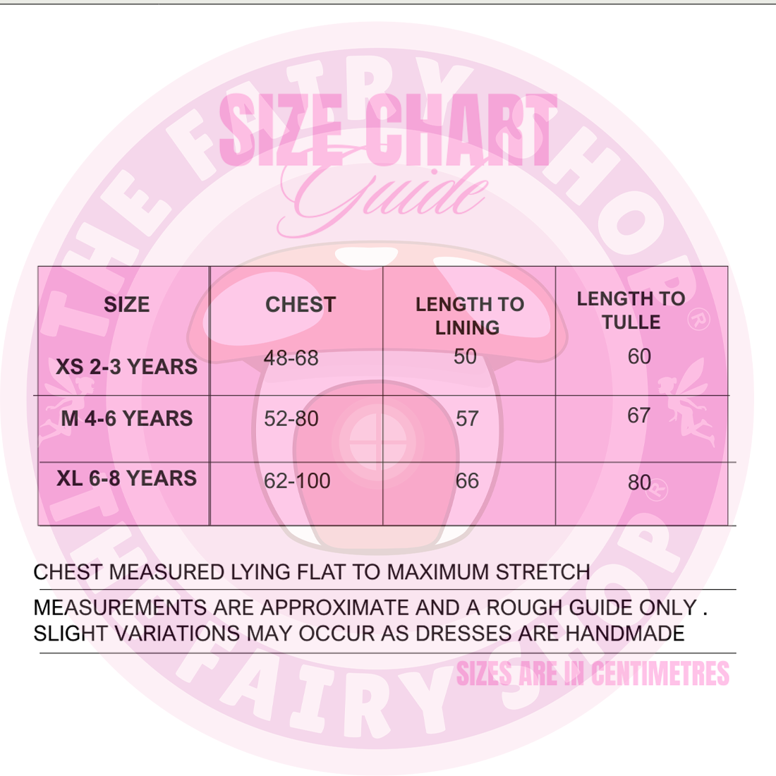 This enchanting fairy dress is in stunning shades of purple. Featuring giant roses across the neckline, straps and front waistline. The bodice is in a stunning velvet and the skirt is lined in a soft fabric, 2 layers of soft tulle and a one layer of net for fullness finished with beautiful green in 2 shades organza petals .