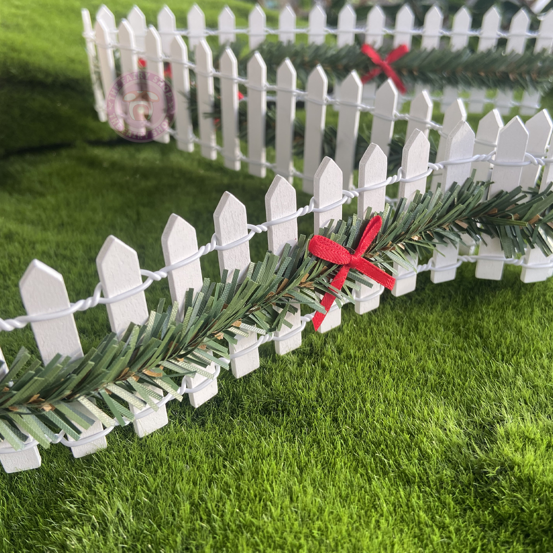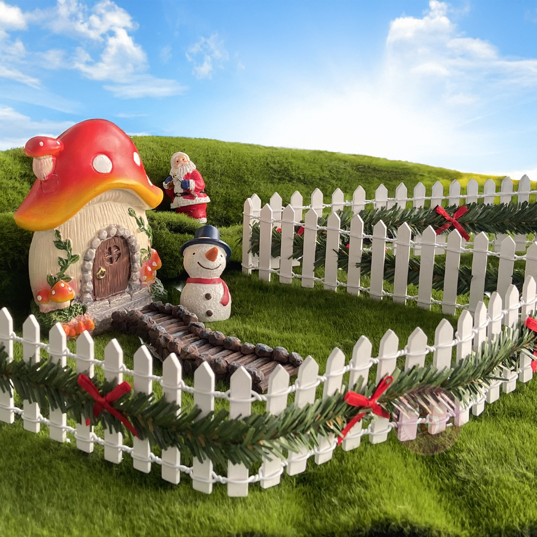 Add a cheerful border to your Christmas fairy garden with this 90cm x 5cm fence. Adorned with a green garland and bright red bows, it’s both flexible and stands on its own when curved, perfect for spreading holiday magic.