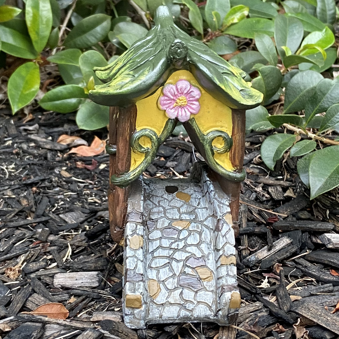 Add a charming touch to your fairy garden with this delightful Leaf Covered Bridge, perfect for creating a magical miniature world.