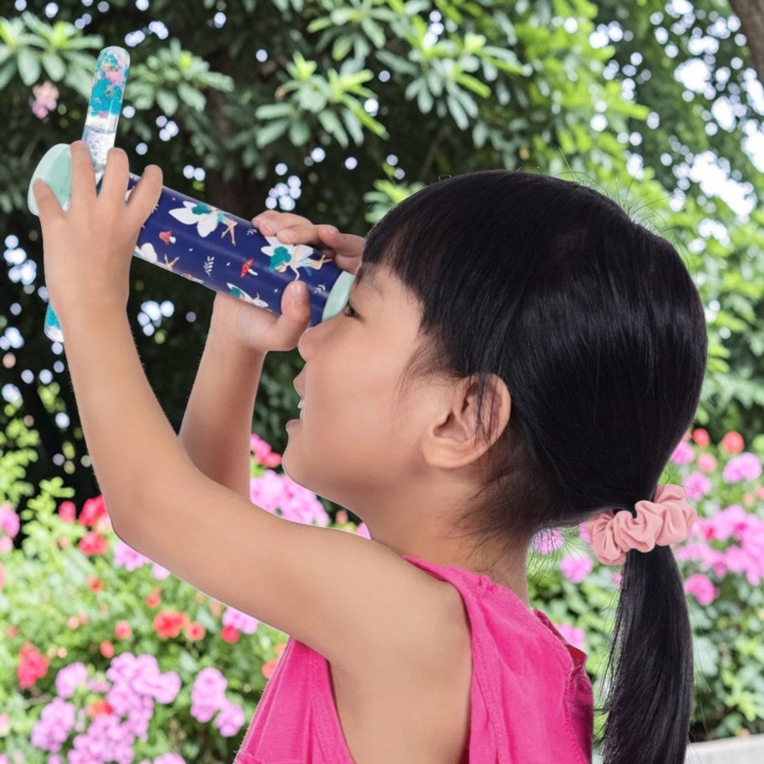 Step into a mesmerizing realm of colour and wonder with this enchanting Fairy Wand Kaleidoscope! Simply rotate the wand to unlock a magical cascade of swirling patterns and dazzling hues that dance before your eyes. Perfect for sparking imagination and creating moments of pure delight, this whimsical toy brings the magic of fairies to life, it measures 14.5x3.2x15.7cm, the ideal size for little hands to explore and enjoy. Watch as each twist reveals a new kaleidoscopic adventure!