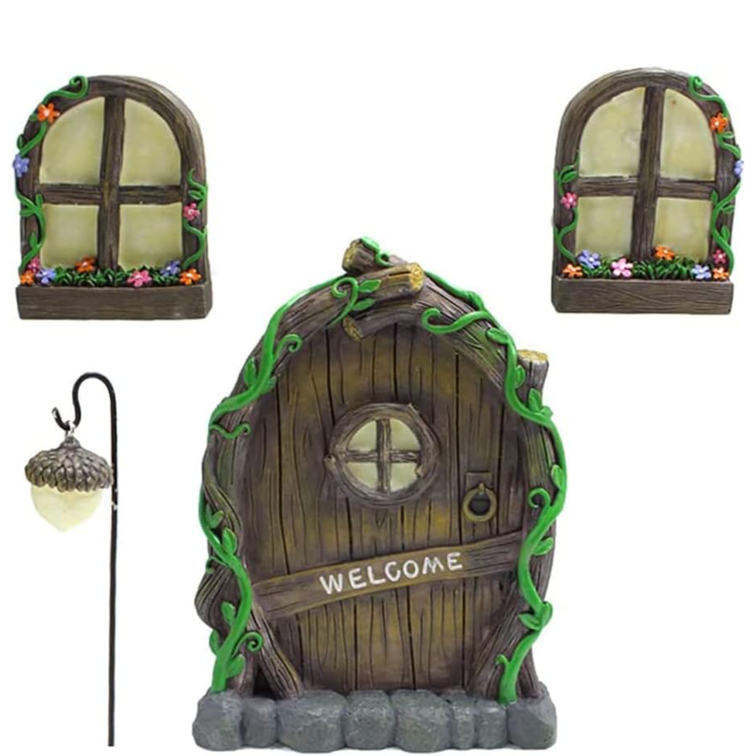 This lovely fairy door is simply stunning, it can stand on its own or be attached to a wall or tree with the attached picture hook on the back. The door comes with two charming windows and a little lantern. It's perfect for adding a touch of fairy magic to your decor during the day, and when placed in the sun, it will glow at night!, the door window, windows and fairy lantern are coated with phosphorescence, which absorb sunlight during the day and automatically light up at night. No battery required.