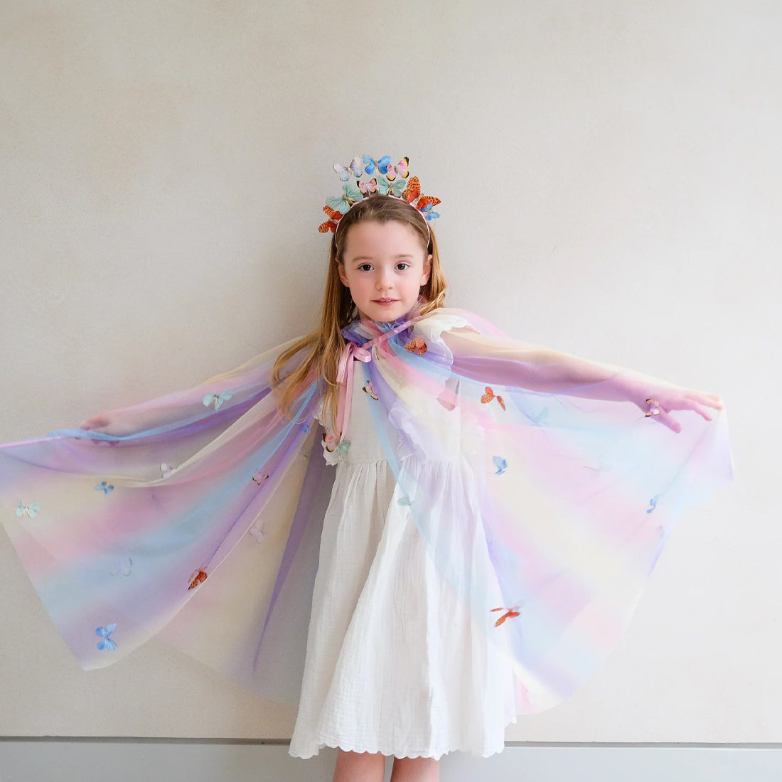Let their imagination take flight with Mimi and Lula's dreamy new Butterfly cape! Adorned with delicate, colourful butterflies, this beautiful rainbow cape is perfect for parties, dress-up or simply adding some magic to ordinary days! Why not team with our Butterfly wand or headdress for the full look!