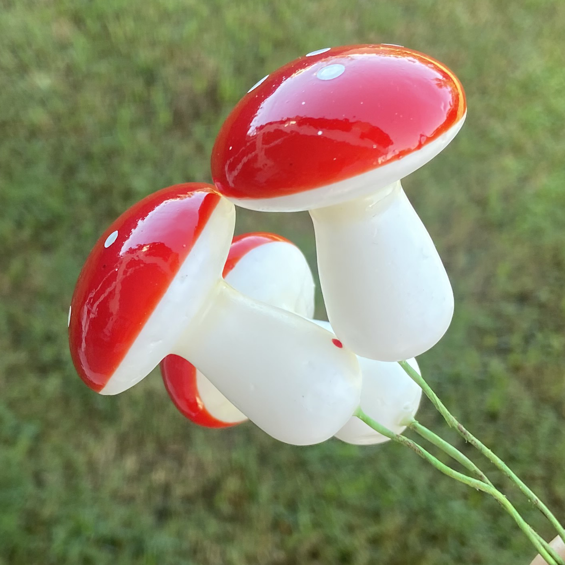 These classic medium size red and white fairy mushrooms bring a touch of magic wherever they grow! This set of mushrooms, measure 2.5cm x 3cm with a total length of 8cm, including a bendable green stem, making them the perfect size for a variety of uses.
