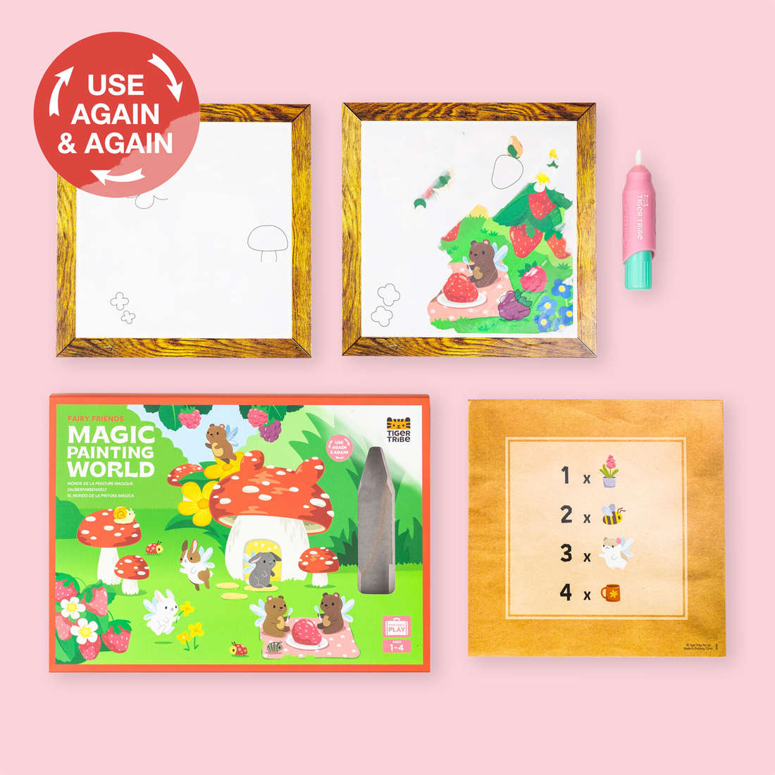 Magic Painting World is an ideal introduction to mess-free painting for little ones, where hidden pictures are revealed using the refillable magic water brush, perfectly sized for little hands. Once dry, the scenes disappear so that kids can play over and over!