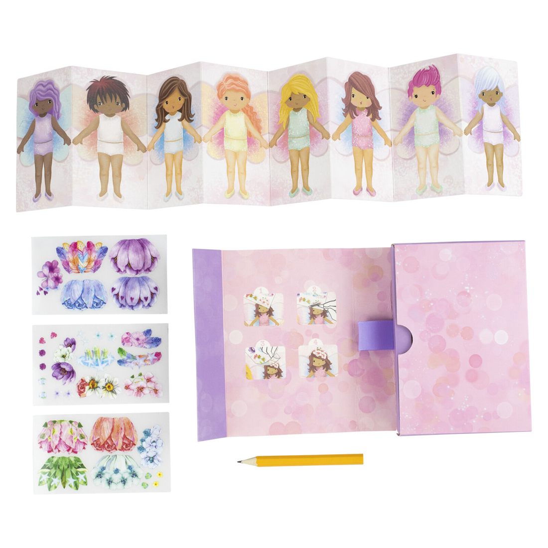 Create some fairy magic with this mini transfer magic - flower fairies set, a fun activity set in a super compact format, where children use their imagination to make their own creative combinations.