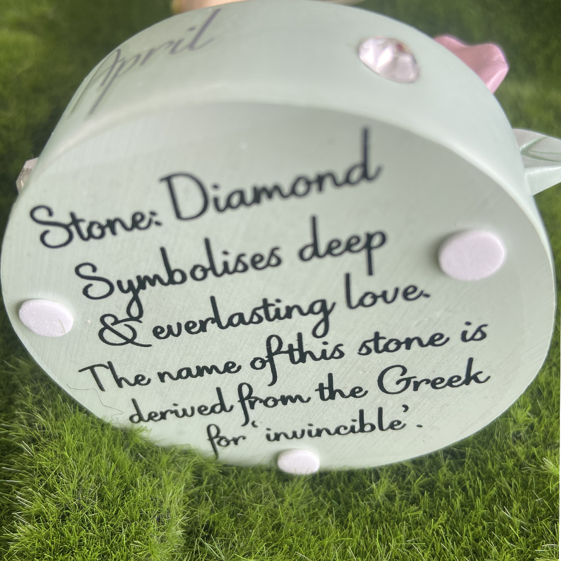 This gorgeous Diamond Birthstone sculpture is perfect for celebrating someone’s special day. The sculpture features the birth gemstone for the month of April on the front along with a meaning for the gemstone printed on the base to make it an extra sentimental gift.