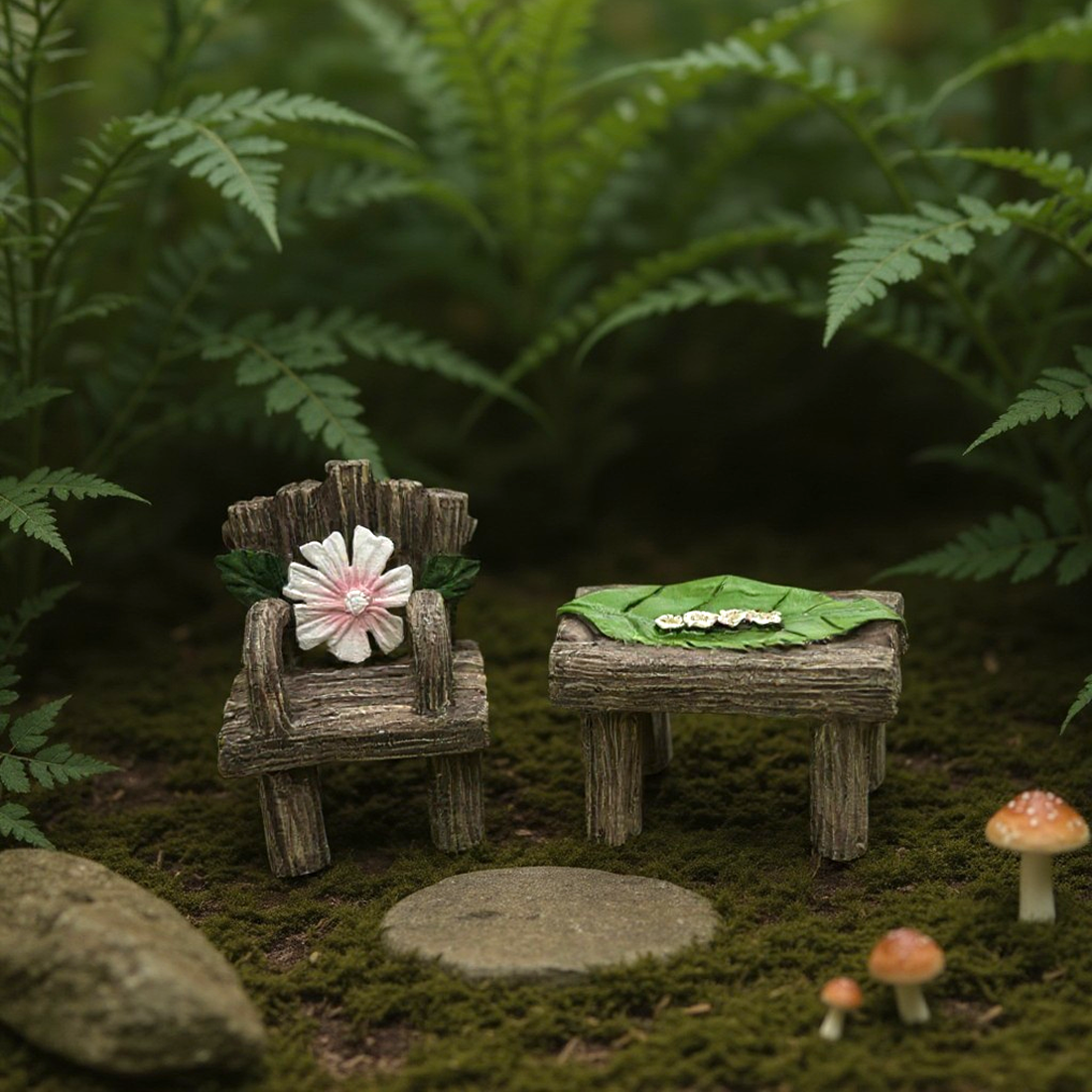 How adorable is this fairy garden table and chair set. It comprises of a table and a chair, with a gorgeous leaf and flower detail.